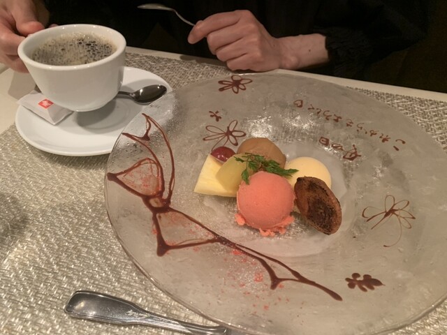 予約時、デザートプレートにメッセージをお願いすると、いつも素敵に描いてくれます!