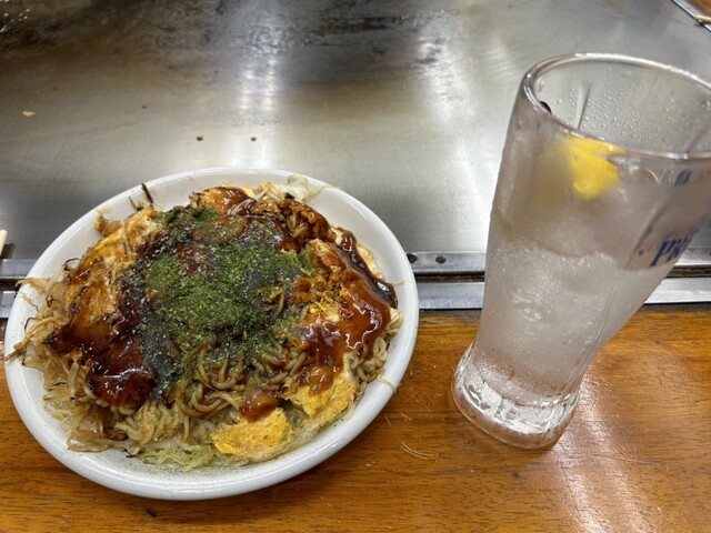 東京からブラっと広島観光に来ました。まずは市内でお好み焼きをお昼に食べようと思い、雨の中を市電に乗ってお好み村へやって来た。階段上がって直ぐに目当ての八昌がありました。事前の調べでは行列が出来るとのことだが、この豪雨でも、2組くらい客が待ってるということは、やはり普通はもっと長い行列覚悟でしょう。この店の興味深いところは、店員さんがいかにも広島の雰囲気でした。(違ってたらすいません。)広島弁で何やらよく話しかけてくれます。レモンサワーとデラックスお好みで1人2,000円くらいですが、妻の牡蠣入りも美味しそうでした。中身は焼きそばとうどんが選べますが、ビギナーは焼きそばでしょう。画像の通り、量が多いのでお腹を空かせて行きましょう。それにしても、全国に広島風のお好み焼きとかあるけど、ここのお好み焼きは分厚く、肉と魚介とソースが絶妙に絡み合った別次元のものです。何でも本場は違うんですね。待ち時間を聞いて帰る人もいたが、多少並んでも、その甲斐は十分にあるでしょう。