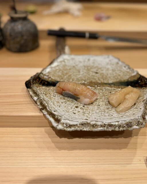 後に残るこはだの風味がとても好き。赤シャリとよく合う。