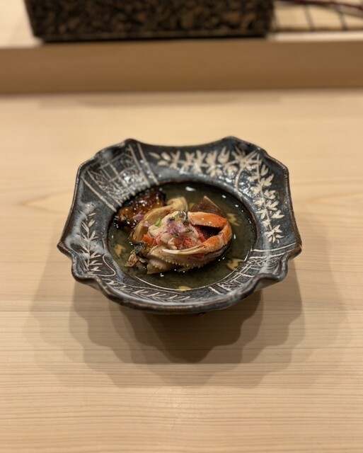 身と卵がぎっしり詰まった蟹を松茸とともに餡掛けでいただく。香り豊かで、餡をスプーンで最後まで飲みたくなるお味。