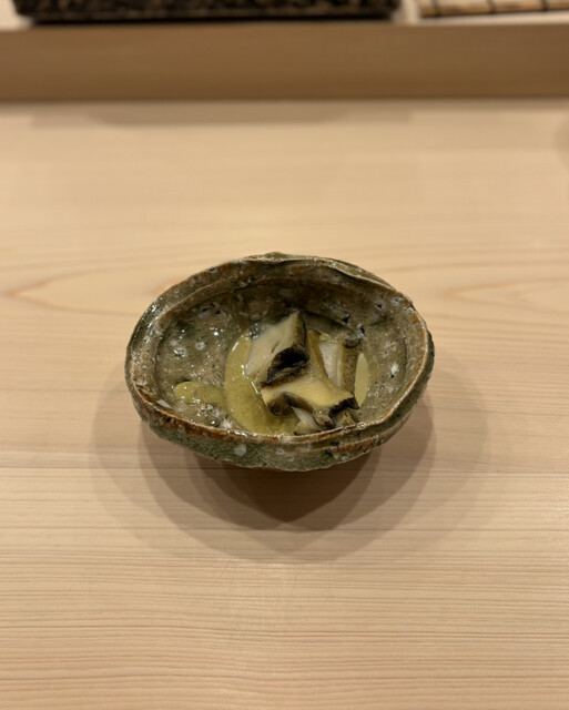 肝ソースにあえられた鮑をいただいた後、お米の肝ソースかけ。この肝ソースが濃厚で美味しすぎた。