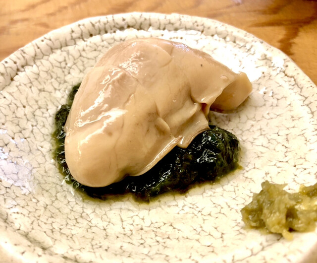 濃い〜旨味の蒸し牡蠣や珍しい喉黒肝で爾今も更に旨くなりますなぁ♫