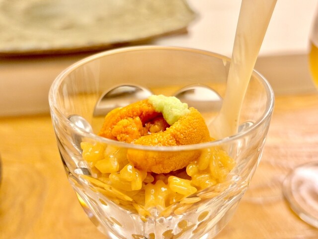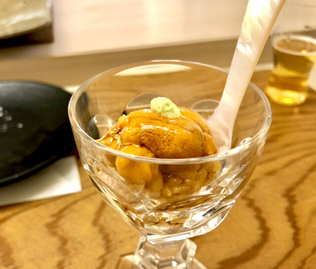 ちょっと硬めのシャリの塩梅がいい馬糞雲丹パフェは変わらない旨さ!