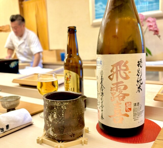 すかさずお任せで出てきた、地元群馬の「龍神 純米大吟醸 喜八Special」