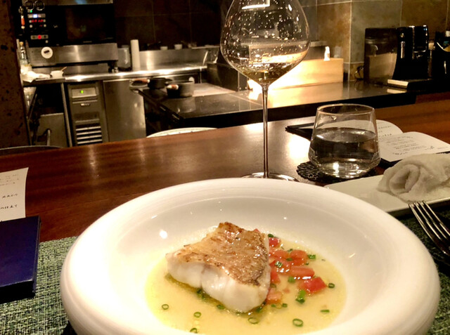 神経〆の甘鯛のアクアパッツァ 普段は喉黒の様ですがこの日特別に甘鯛に 皮目こんがり トマトの酸味が又旨かった