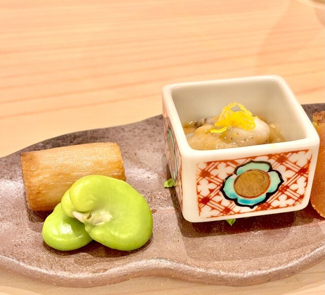 ♢ そら豆、ウド、ナマコとコノワタの和物