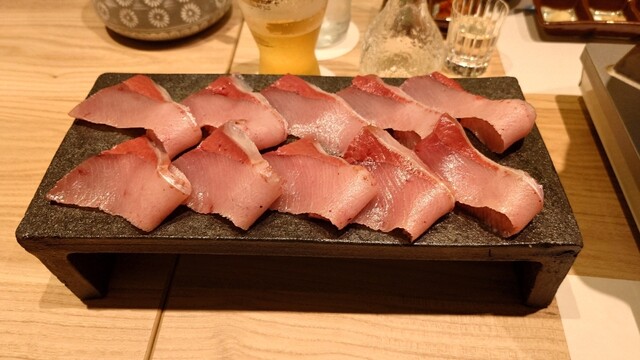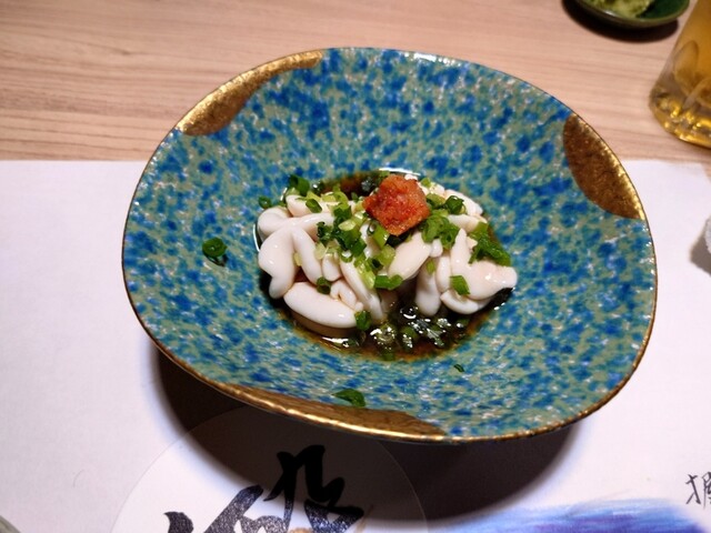 一日寝かした河豚の刺し身は、身が引き締まり噛むとほのかに甘くて大変美味しかったです。同じ個体から取れた白子も皮目が厚く塩味を帯びていて極上。