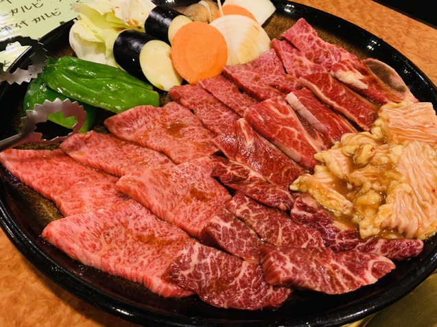 (ロース、ハラミ、タレタン、ツラミ、焼野菜)