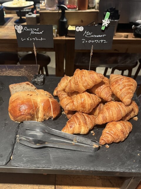 料理もパンもとっても美味しい。あれも食べたかったのにお腹いっぱいってならないように、注意しながら料理を取って来ました。サーブされたコムハニーをクロワッサンや生ハムに付けて食べると合うと聞いて、やってみたら確かに生ハムが一段と美味しくなりました。