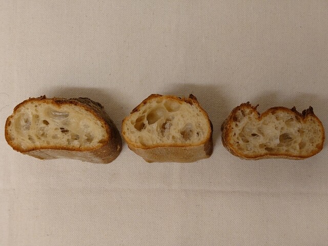 バゲット断面外観比較 (左から Baguette Oryzae, Baguette, α Baguette)