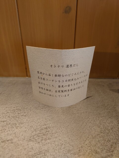 結論から書くと、オトナリさんはとんでもなく出汁が旨い。座るや否や目に入ってきた説明書きがこちら。