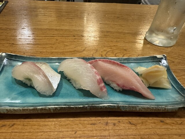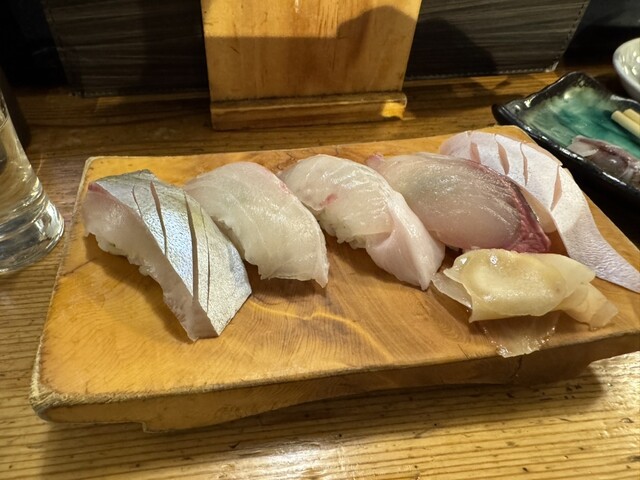 お寿司5貫(カンパチ腹身、ヒラメ、ハマチ、縞鯵、真鯛)
