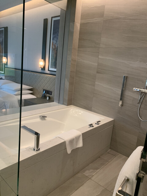 もちろんお部屋はスイートより狭いのですが、それでもじゅうぶん広々だし、ホテル棟の窓に面したお風呂が大好きなので、うれしいです。