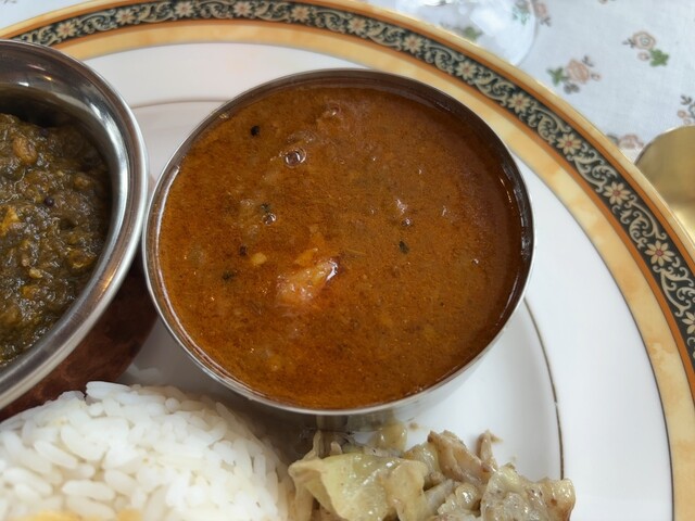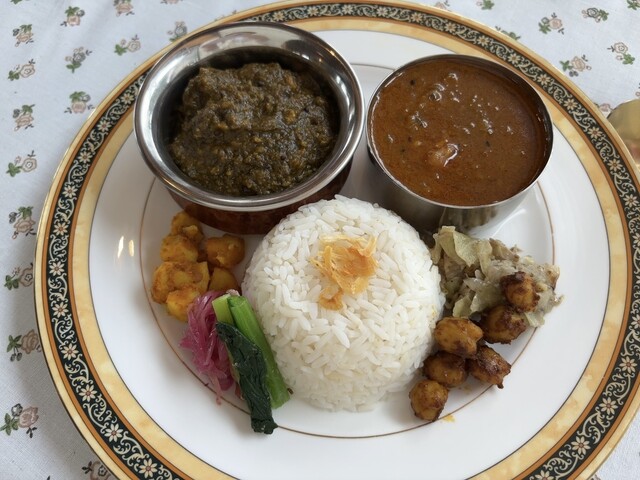 サグチキン。ネパール系のカレー屋さんでよく出てくる鮮やかな緑のサグチキンではなく濃いめの色。ほうれん草の繊維やアクまでも美味しさに変えた奥深いサグチキン。