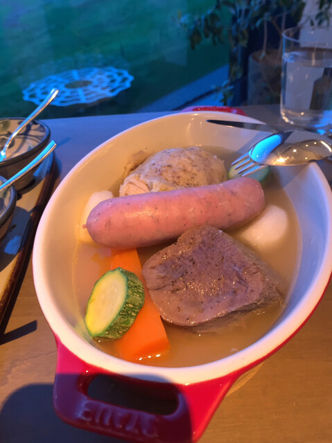 牛タン、鶏もも、豚肉、ソーセージ、いろんなお肉を蒸し焼きにしたのかな。