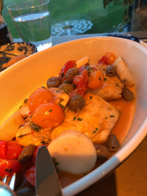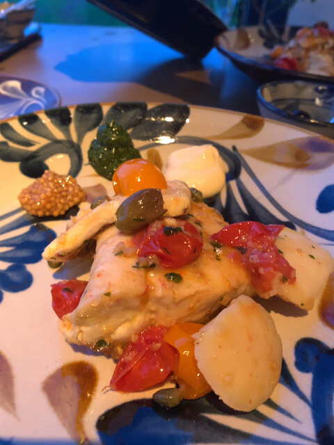 大きな鯛のグリルに野菜たっぷりのソース。食べ応えあり!