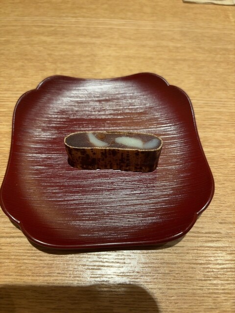 百合根の入った一口羊羹とお抹茶。最後まで凝りに凝った食材で感動。