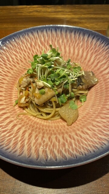 パスタにはサンマが。