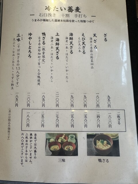 のびたりくっついたりするので、当然のごとくそばに大盛り設定なし。追っかけで「おかわりざる」を頂くべし。