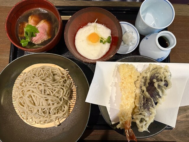 こちらは鴨ざる、とろろ、天ぷらのお得なセット