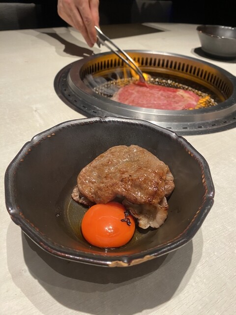 ユッケは目の前でお店の方が丁寧に混ぜて仕上げてくれます!卵とユッケが混ざり濃厚で美味しい〜
