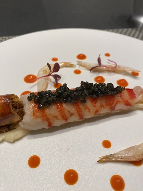 3種類の海老をそれぞれの海老の特徴を生かす為の調理法で1皿にまとめキャビアが乗った豪華な一皿✨