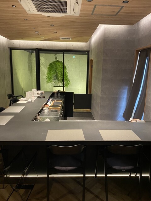 店内は再生木を活かした温もりある空間で、カウンターと個室がありライブ感あふれるカウンターキッチンでは、シェフの技を間近で楽しめます˖