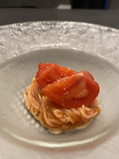 冷製カッペリーニは狼桃トマトがとっても甘くてさっぱりといただけます✨