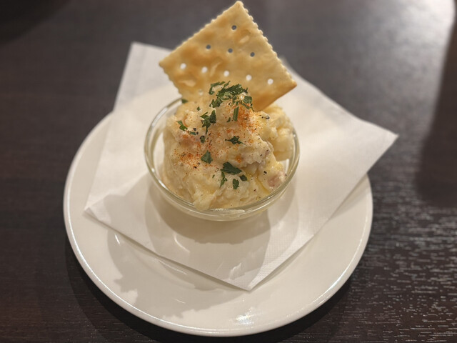 ミニポテトサラダは濃いめの味付けで、クラッカーと合わせて食べると納得のおいしさ。
