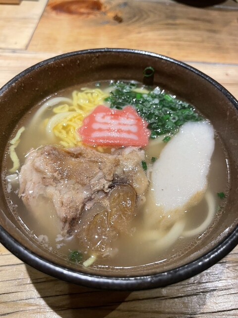鶏肉を沖縄そばの出汁で漬け込まれていて