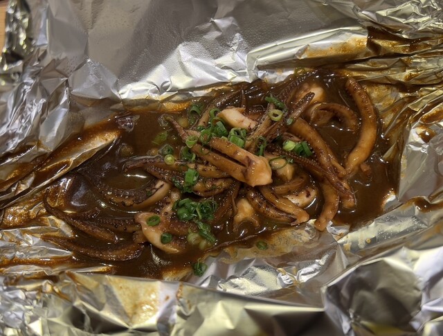 イカ下足肝ホイル焼も美味しくて酒に合うし最高!