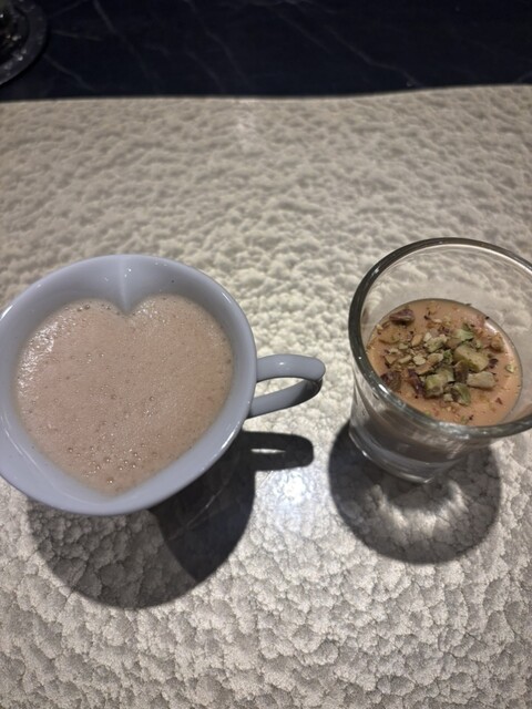 紅茶のパンナコッタはピスタチオの風味が良く、甘さ控えめで締めにぴったり。