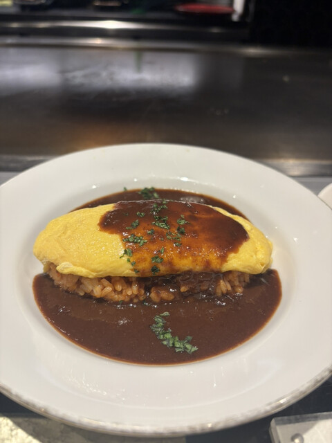 ガーリックライスは大葉の香りが良く、オムライスは卵がとろっとろ。