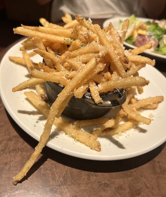 以前モーニングで行ってお気に入りになったお店に再訪問。パンケーキが有名なお店なので、ご飯はサラダとトリュフポテトのみに留め、ダブルパンケーキを注文。ポテトは細くてカリカリのタイプ。トリュフの風味がしっかりして美味しい。そして肝心のパンケーキも安定の美味しさ。ふわふわだけどしっかり食べ応えがあり、バターもメープルシロップも美味しいです。