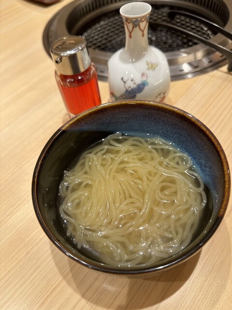 〆は中野製麺の盛岡冷麺!牛骨を使ったオリジナルスープにトゥルトゥル麺が絡んでとても美味しかったです。味変にラー油をかけることもできます。飲み干したくなるスープです。