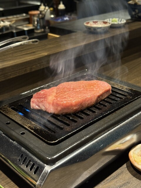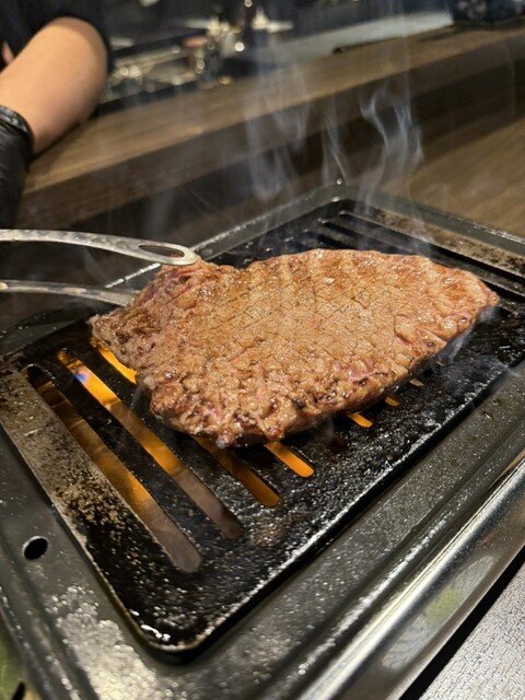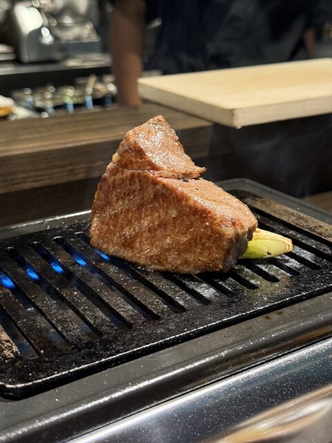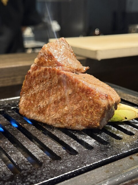 希少部位のイチボはを贅沢に塊で焼いていきます。イチボは肉の旨みが強い部位なので、しっかりとした味わいに。焼き加減をレアに仕上げることで脂の甘みも楽しめます。