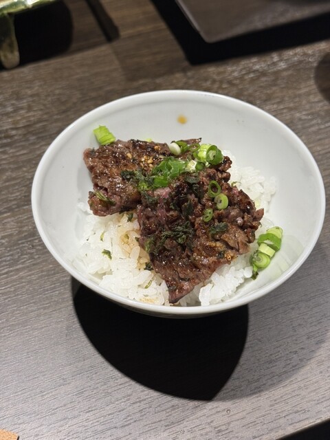 タレの香りと肉の旨味が口の中に広がります。このタイミングでのミニ丼は嬉しい、やっぱりお肉にはライスがほしくなっちゃいます。