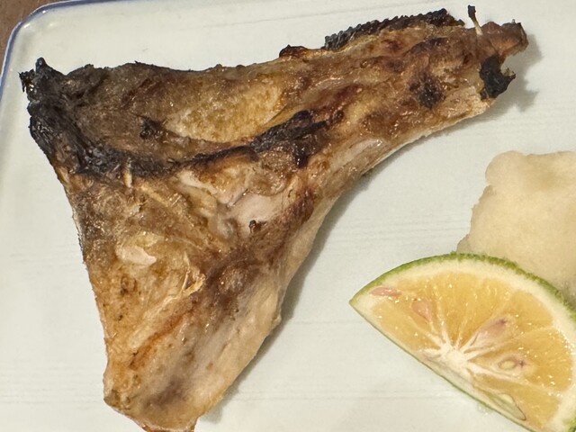 カンパチカマ焼きは脂ノリ最高。当たり前のうまさ。日本酒が進みます。