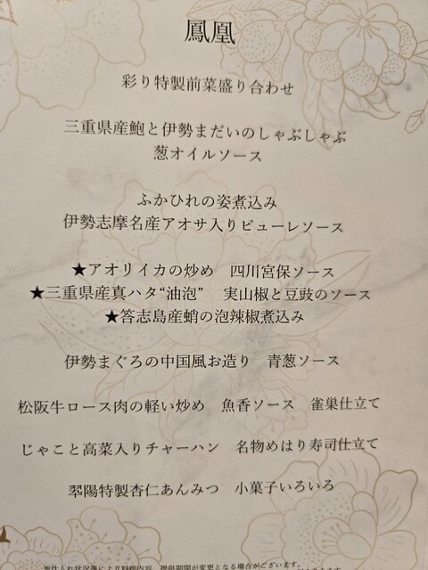 三重県が誇る様々な食材を中国料理の技法とアイデアで毎回違った感動が味わえます。