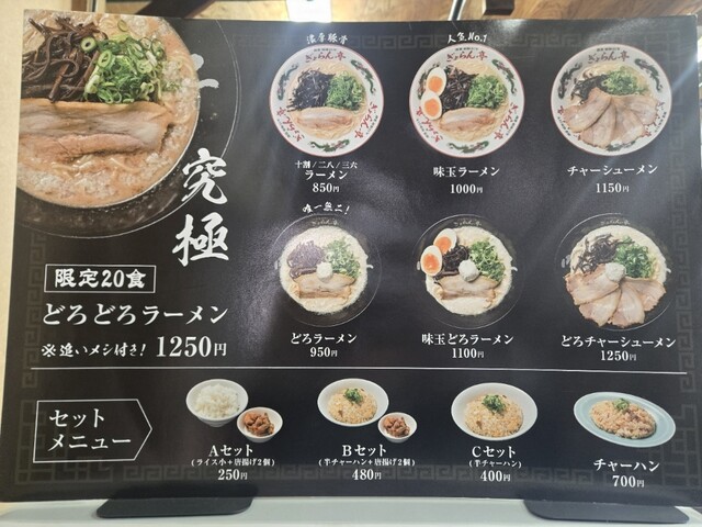 豚骨100%の「十割ラーメン」の他に、鶏ガラと豚骨のWスープでつくる「二八ラーメン」、独創的な〝泡系スープ〟が特徴の「どろラーメン」などがあります。