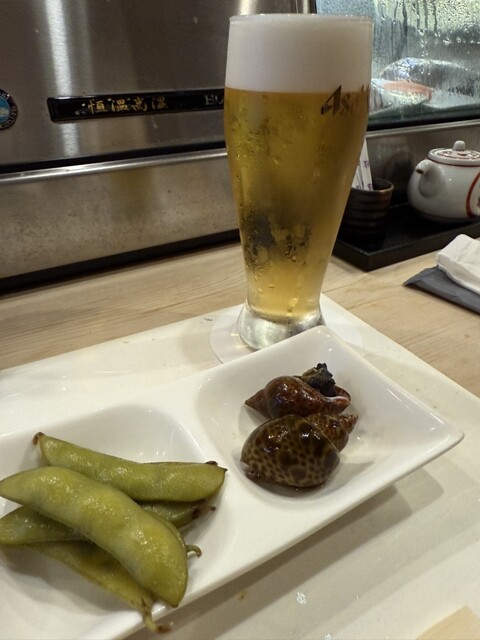 ⭐︎生ビール&お通し:枝豆、ムギイカ