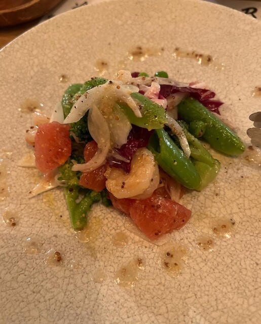 一品目の海老とグレープフルーツ春野菜の冷菜からして、美味しい野菜を食べた!!って感じで、いい酸味と苦味のバランスでとても美味しかった