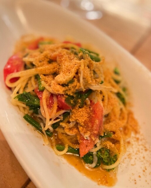 ⭐︎シラスとフルーツトマトの生パスタカラスミ掛け