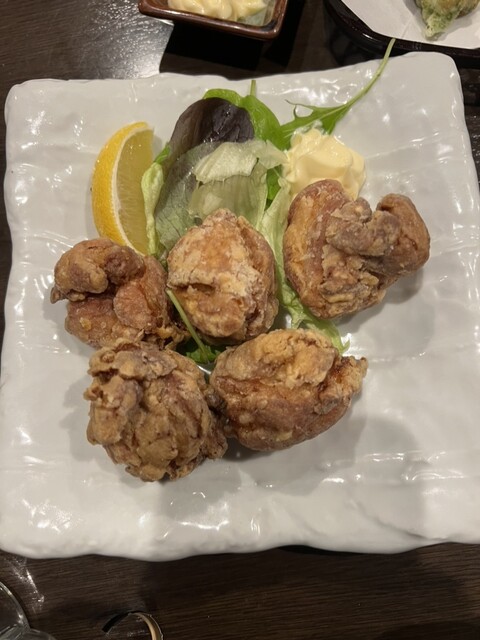 いつもお刺身が美味しく、日本酒がとても良いお酒のラインナップで大好きな居酒屋さんですが、昨夜は黒板メニューで、串天ぷらというものがあって初トライ
