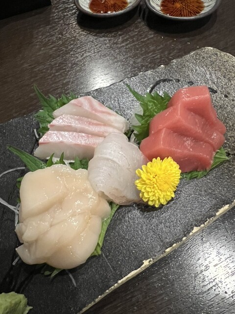 ⭐︎お刺身3点盛り(サワラ・生帆立・本鮪・マハタ1点サービス)