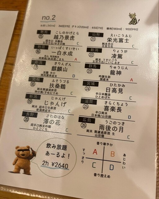 面白いだけでなく、日本酒もそれぞれの味わい別に出してくれるのもまた嬉しい