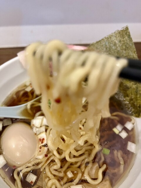 一口啜ると旨みたっぷりで、手揉と思われる麺とも良く合います。
