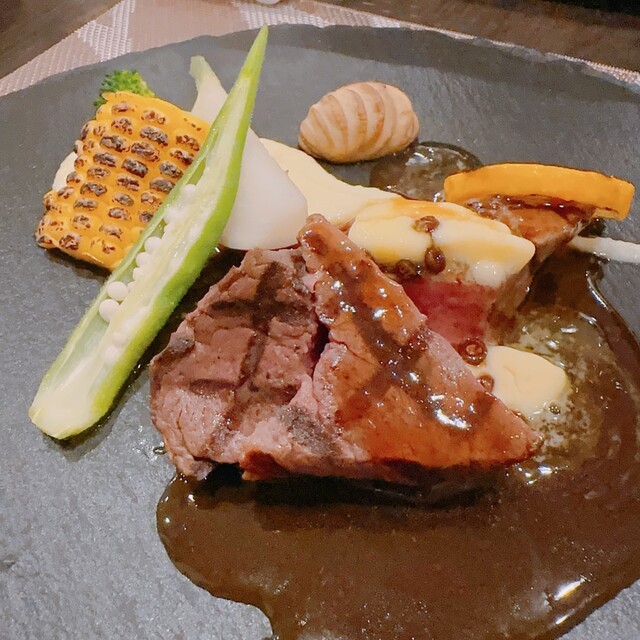 メニューはおまかせコースのみ。隣町の地ワインの白赤セットと一緒にいたただきました。料理はどれもすごくおしゃれで量も多すぎず、さっぱりしていておいしかったです。ワインもすごく好みでした。