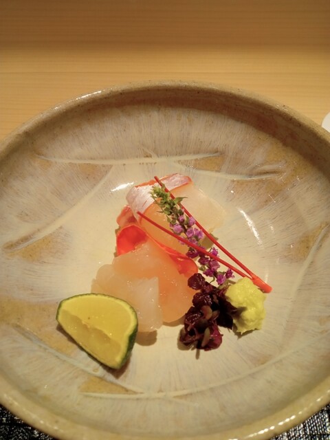 明石産真鯛、静岡産伊勢海老のお造り