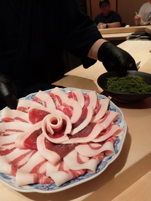 福岡産イノシシのロース、京都産白子筍の白味噌仕立て